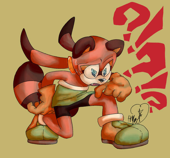 (Example shown is a full body of marine the raccoon with exclamation points and question marks as a decorative background)